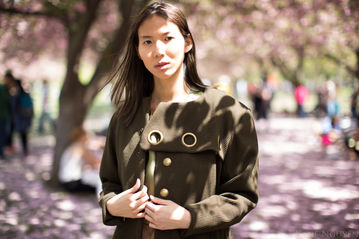 These garments feature antique gold buckles, snaps and grommets of varying sizes to add a harshness/texture to the rather soft color story and shapes of the clothes.